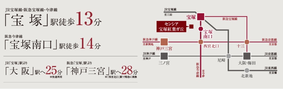 ◇阪急「宝塚」・JR「宝塚」の2駅アクセス。
