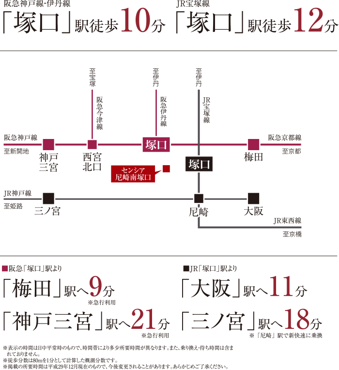 阪急塚口駅へ徒歩10分。梅田へ9分・三宮へ21分の直通。
