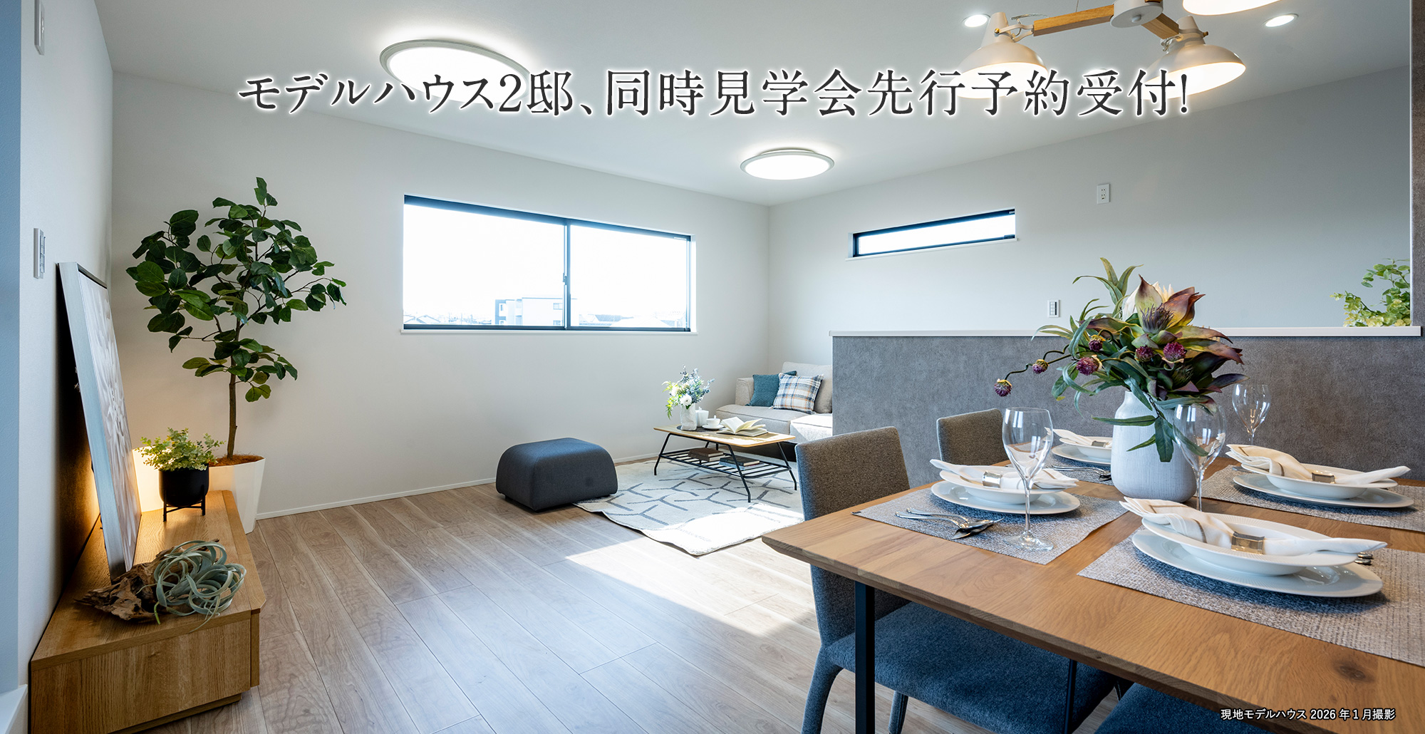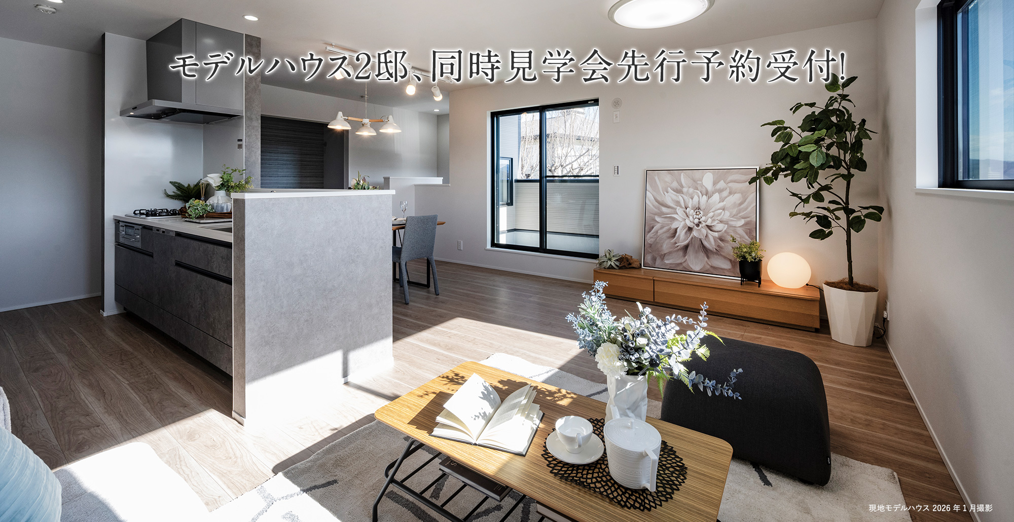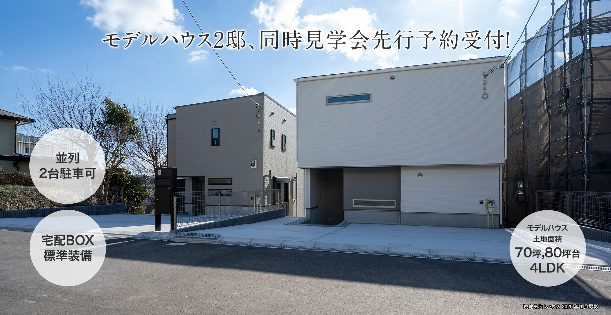 忙しい現代の家族に人気の家事動線や収納、採光性、通風性などを詰め込みました。誰もが使い勝手の良さを実感できるオールインワンの快適性にこだわりました。2台分の駐車スペースも全区画にご用意しています。