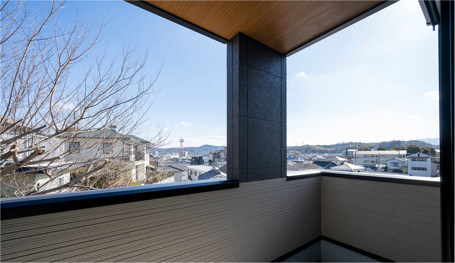 春夏秋と緑の借景を楽しめ、山並みが美しい三田の街並みも一望できるロケーションは、開放感があり心地良さを堪能できます。