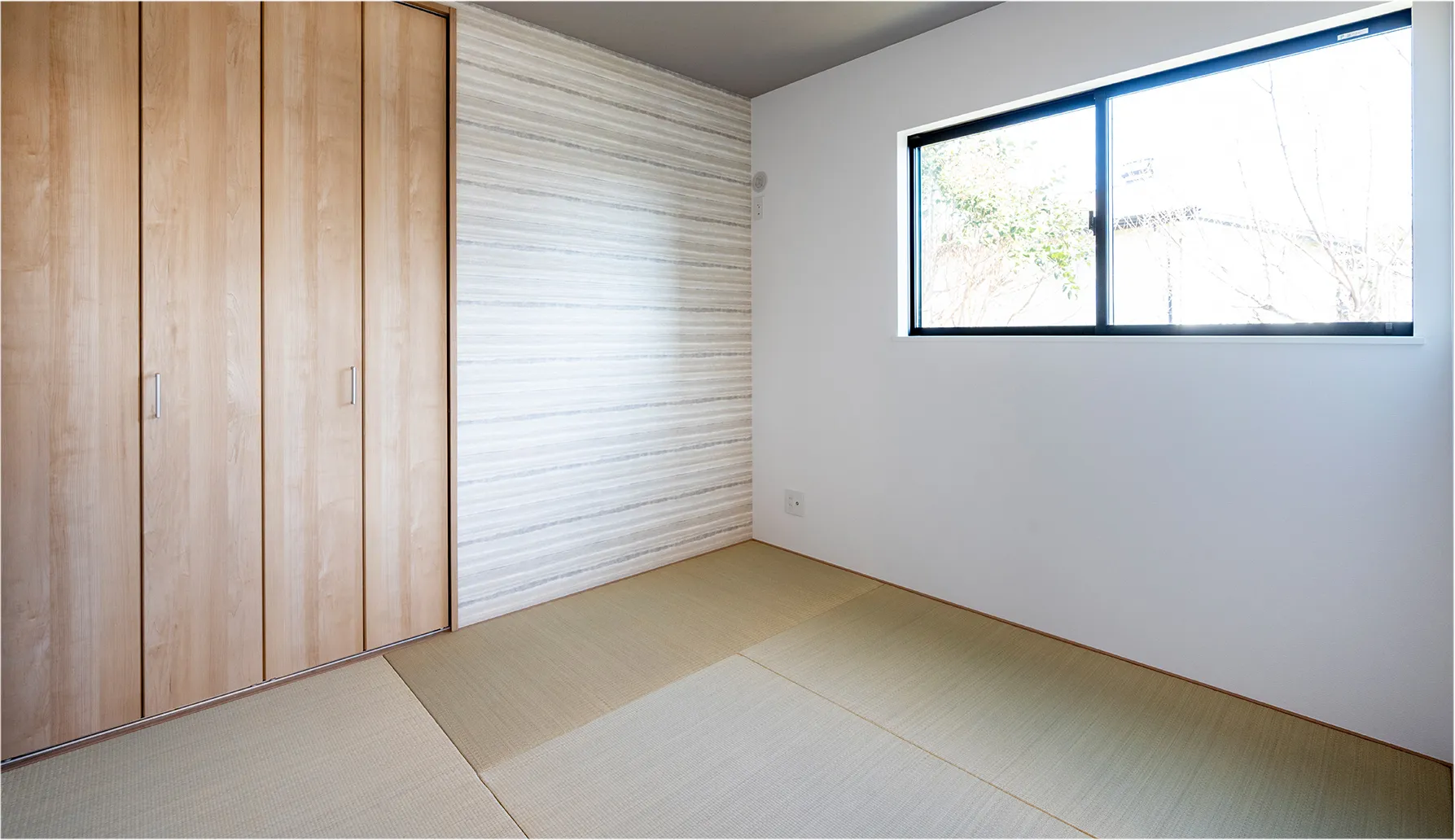 スライドドアでLDKとフレキシブルに一体化する4.7帖和室。ゲストの宿泊スペースとして、
