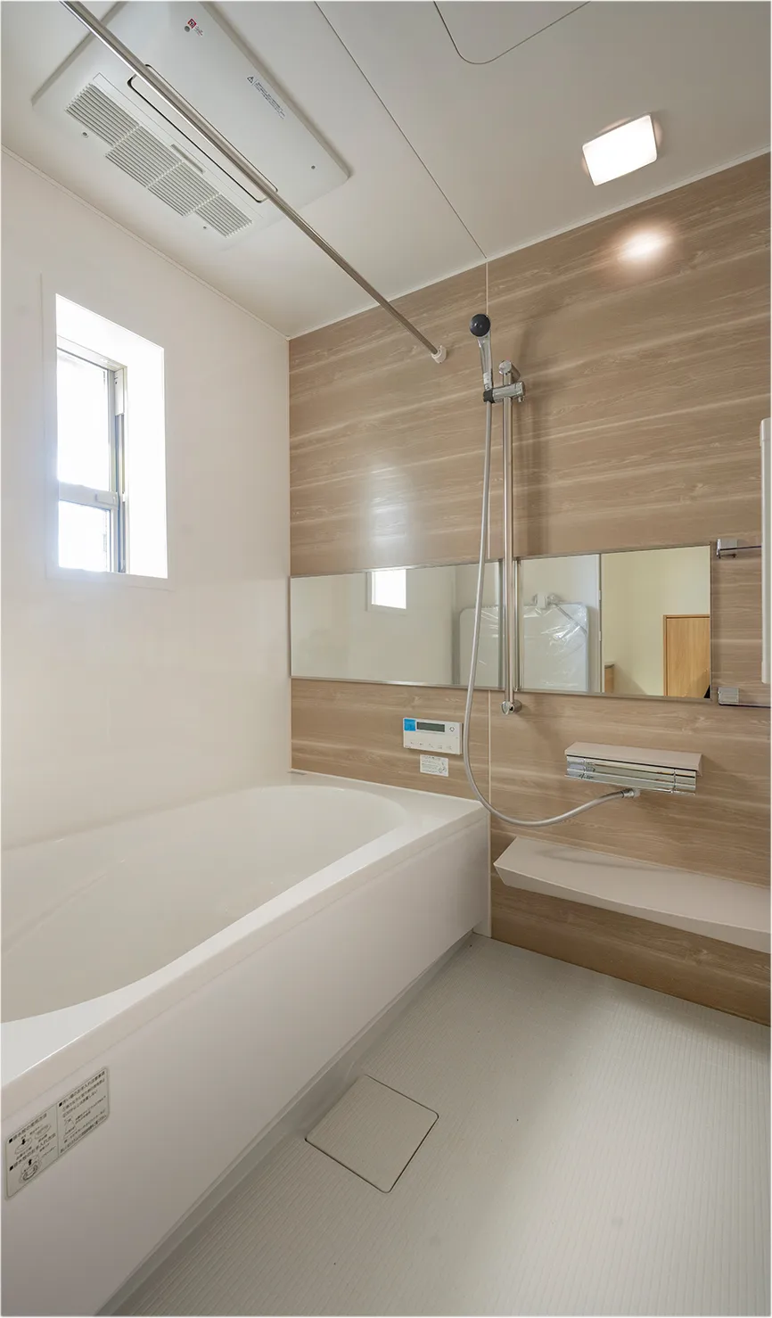 窓付きの浴室は、暖房乾燥機を標準装備。パネルはホーロー製で